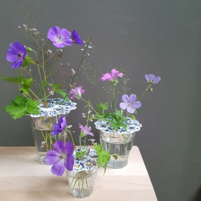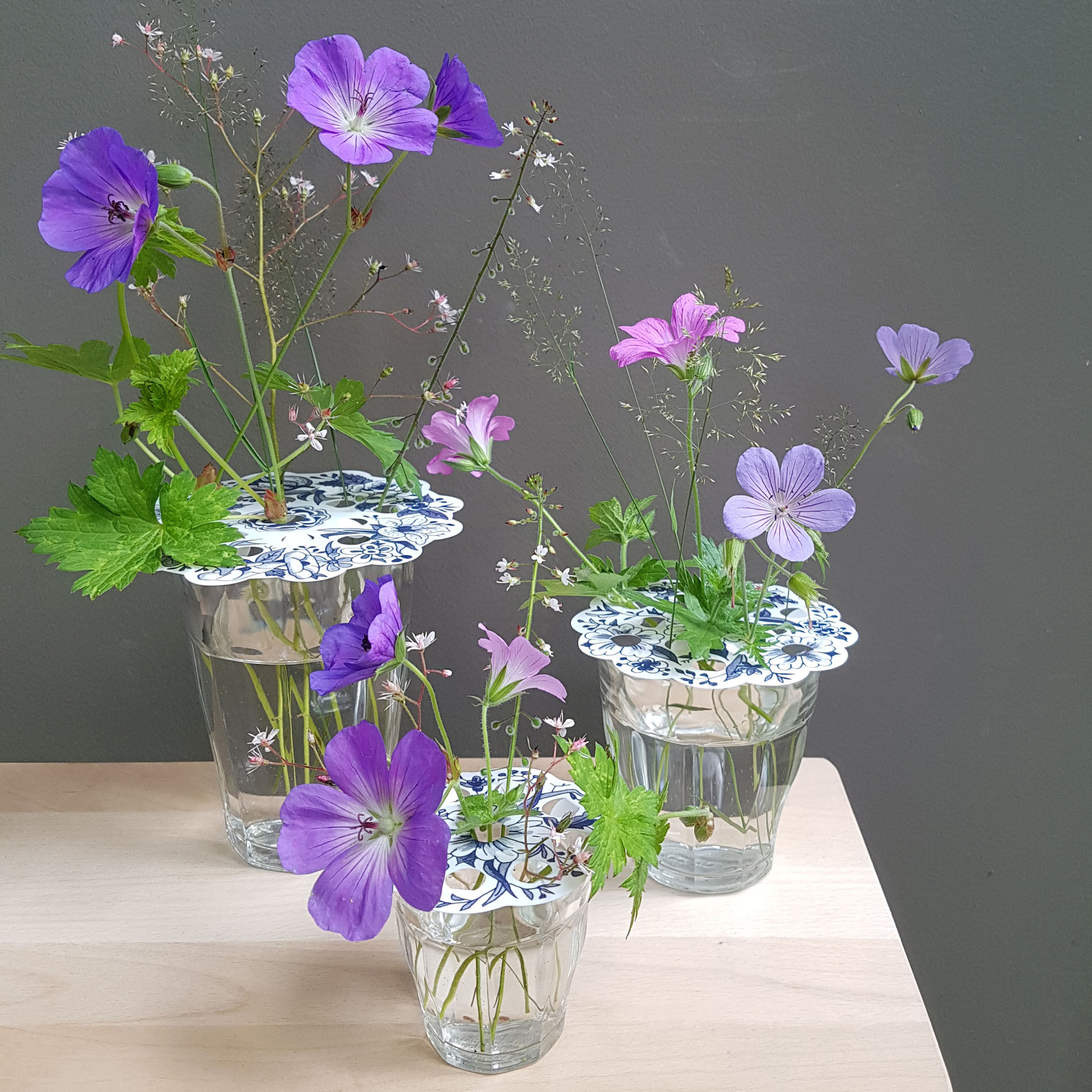 Bloemschikken is van alle tijden. In de klassieke oudheid maakte de bloembindster Glycera al de mooiste boeketten. In later eeuwen ontwikkelde men allerlei hulpmiddelen om steeds indrukwekkender bloemstukken te creëren.De meest eenvoudige vorm hiervan is het bloemenrooster. Het ontwerp van deze roosters gaat terug op een Delftsblauw, 17e-eeuws voorbeeld met strooibloemen.Inhoud: 3 bloemenroosters, 1 envelop en een kaart met ruimte voor eigen tekst.Diameter: ± 12, 10 en 7 cm.Gemaakt van gerecycled polypropyleen.Duw de flapjes naar beneden om de gaten te openen. Leg de roosters op een glas of op een vaas en vul ze met verse bloemen.