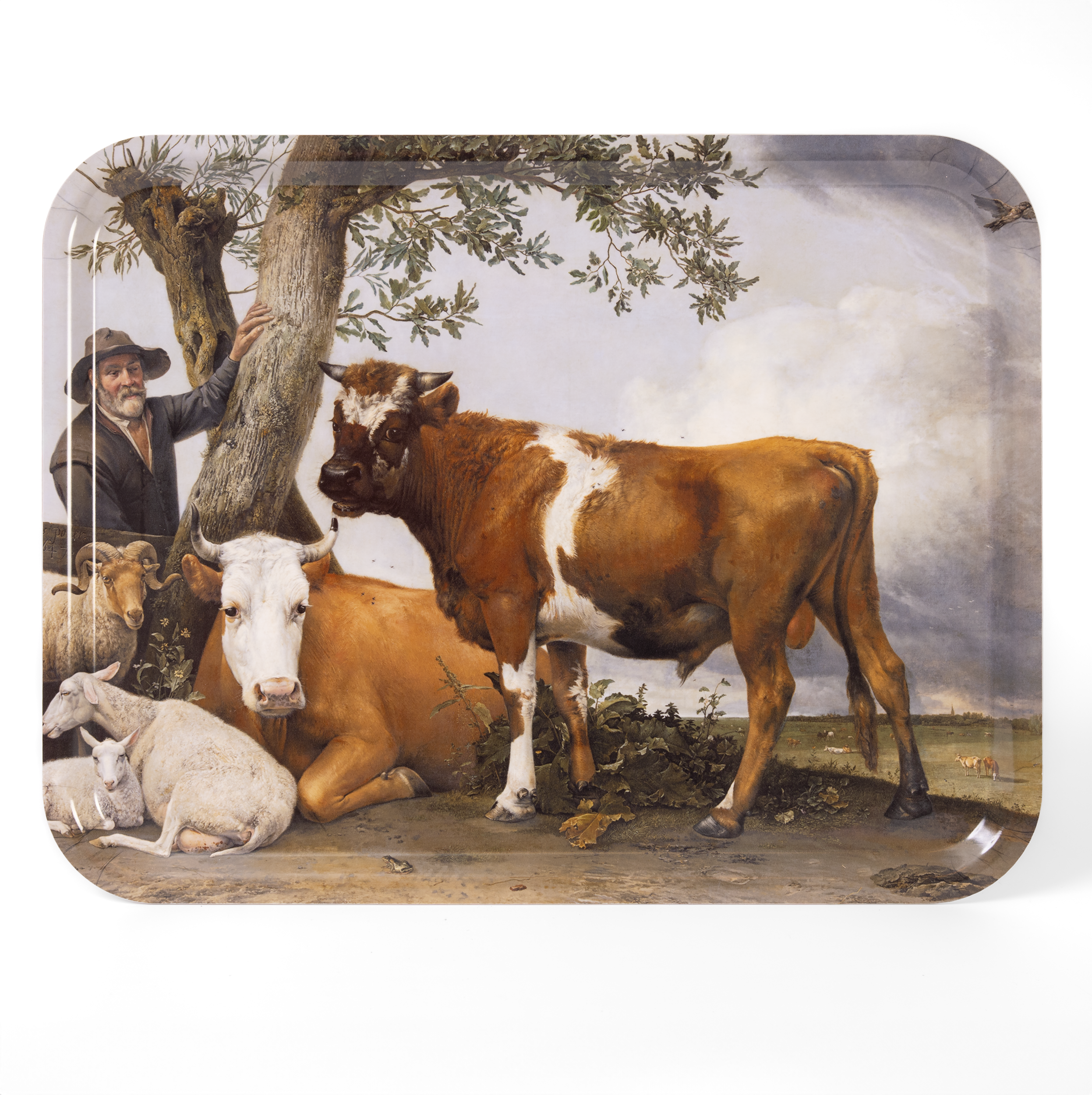 Stevig dienblad met een detail van Paulus Potter, De Stier. Het blad heeft een licht opstaande rand.
