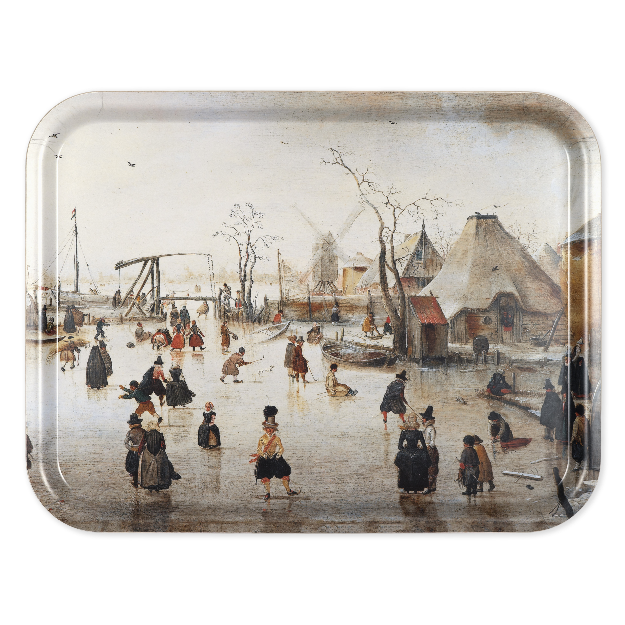 Stevig dienblad met een detail van Hendrick Avercamp, IJsvermaak. Het blad heeft een licht opstaande rand.