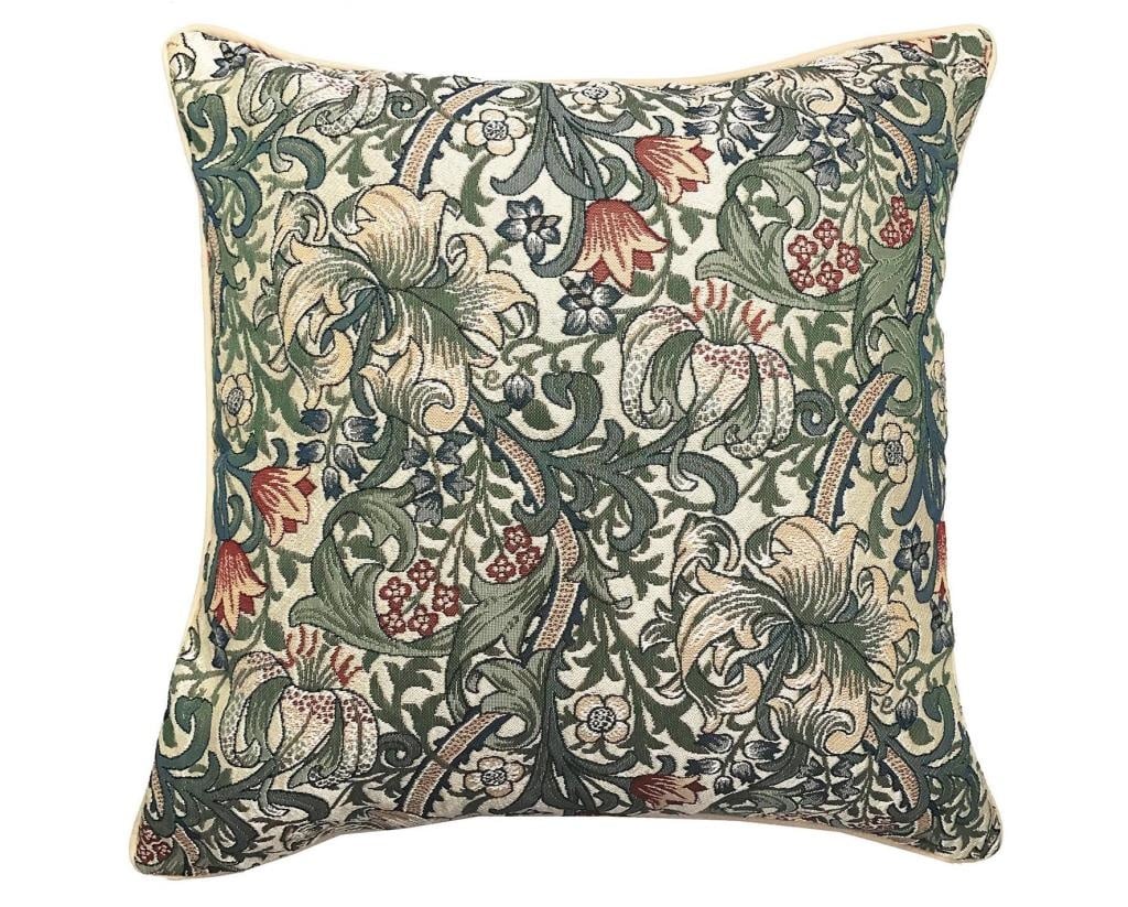 Geïnspireerd door het werk van Engelse textiel- en glas-in-loodontwerper J. H. Dearle, biedt de Golden Lily-collectie 2017 (Dearle werd opgeleid door de iconische kunstenaar en ambachtsman William Morris) een moderne kijk op een tijdloze klassieker. De opvallende seizoensstof van ineengestrengelde leliebloemen, stengels en ranken zorgt voor een bloemstuk dat goed past bij zonovergoten pastelkleuren.