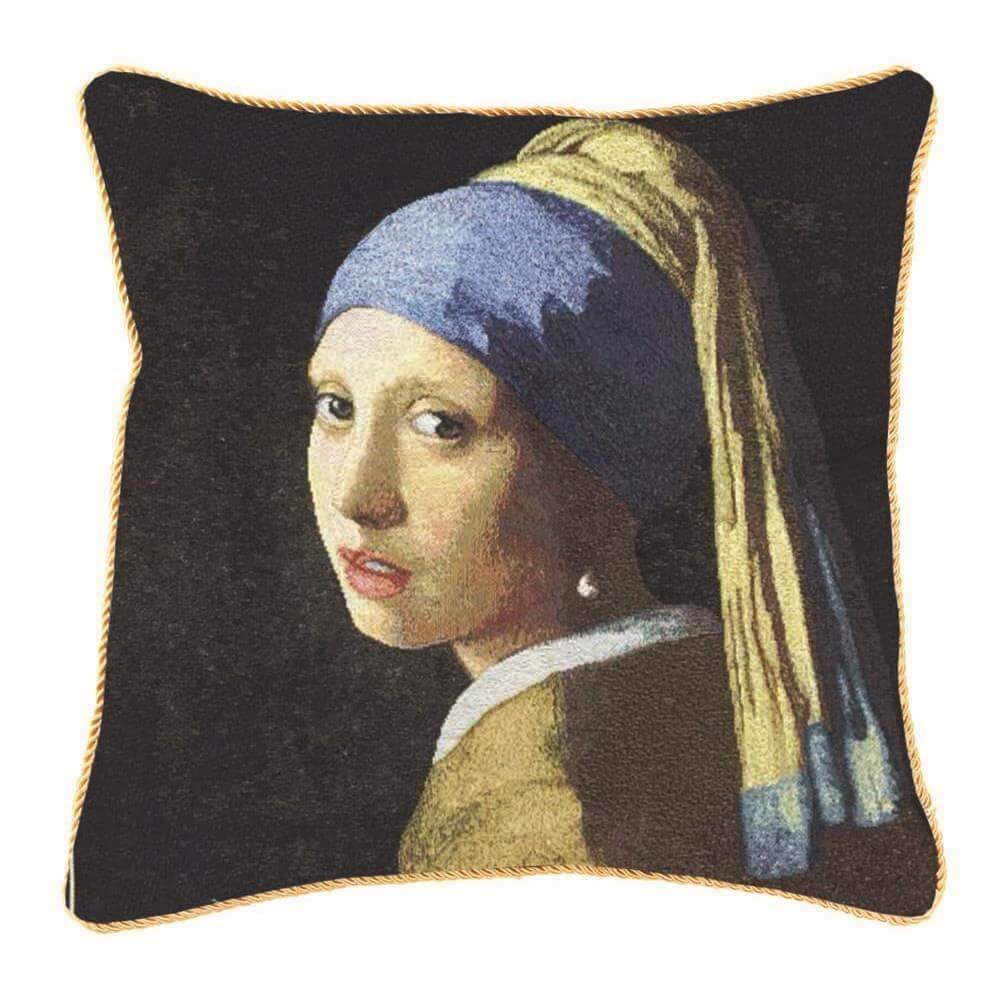Kussenhoes met Meisje met de parel met gouden koord Afmeting: ca. 45 x 45 cm Exclusief vulling
