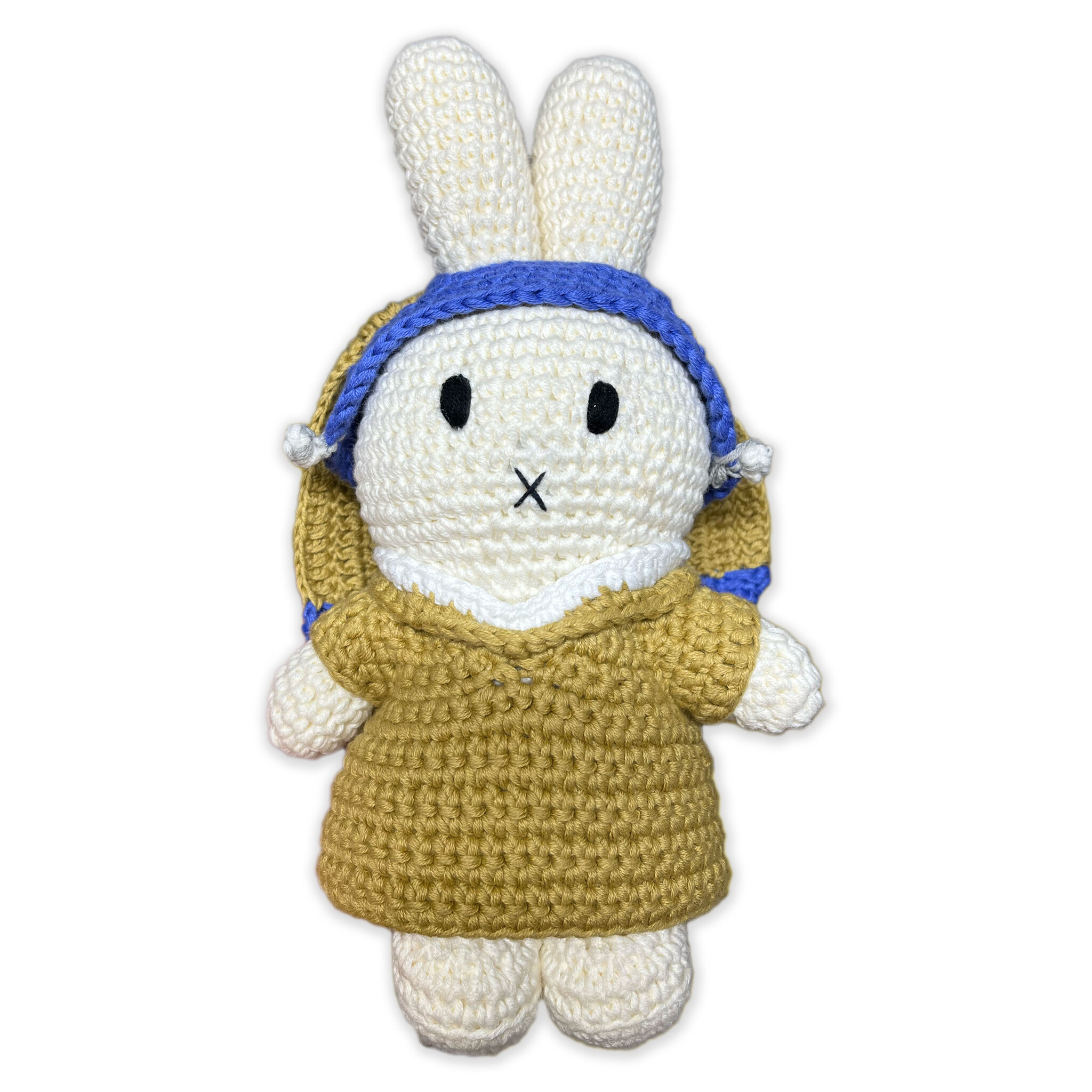 Nijntje pop met Vermeer’s Meisje met Parel outfit, handgemaakt. Geïnspireerd op Vermeers beroemde schilderij ‘Meisje met de parel’.