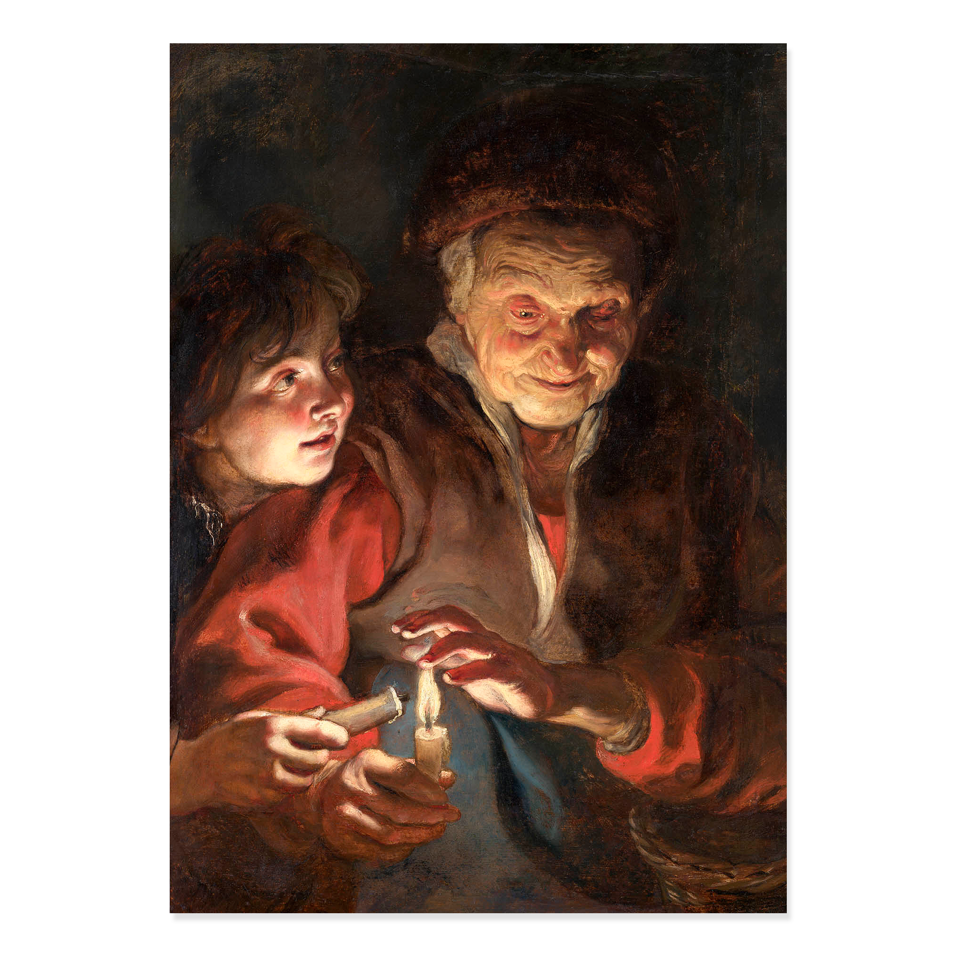 Poster van Peter Paul Rubens, Oude vrouw en jongen met kaarsen. Poster wordt in een koker geleverd.