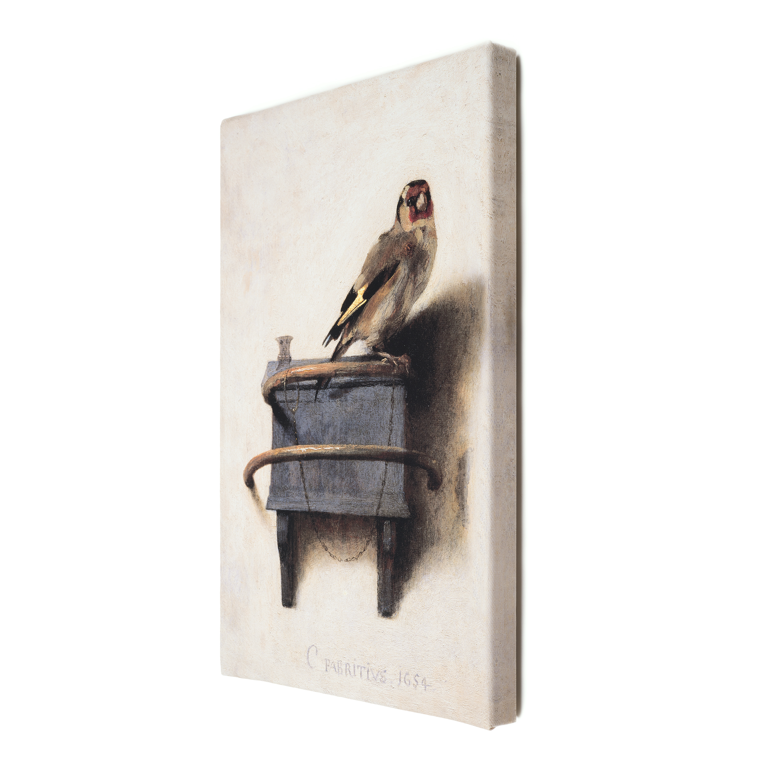 Reproductie op canvas, van het schilderij Het Puttertje van Carel Fabritius, c. 1654.