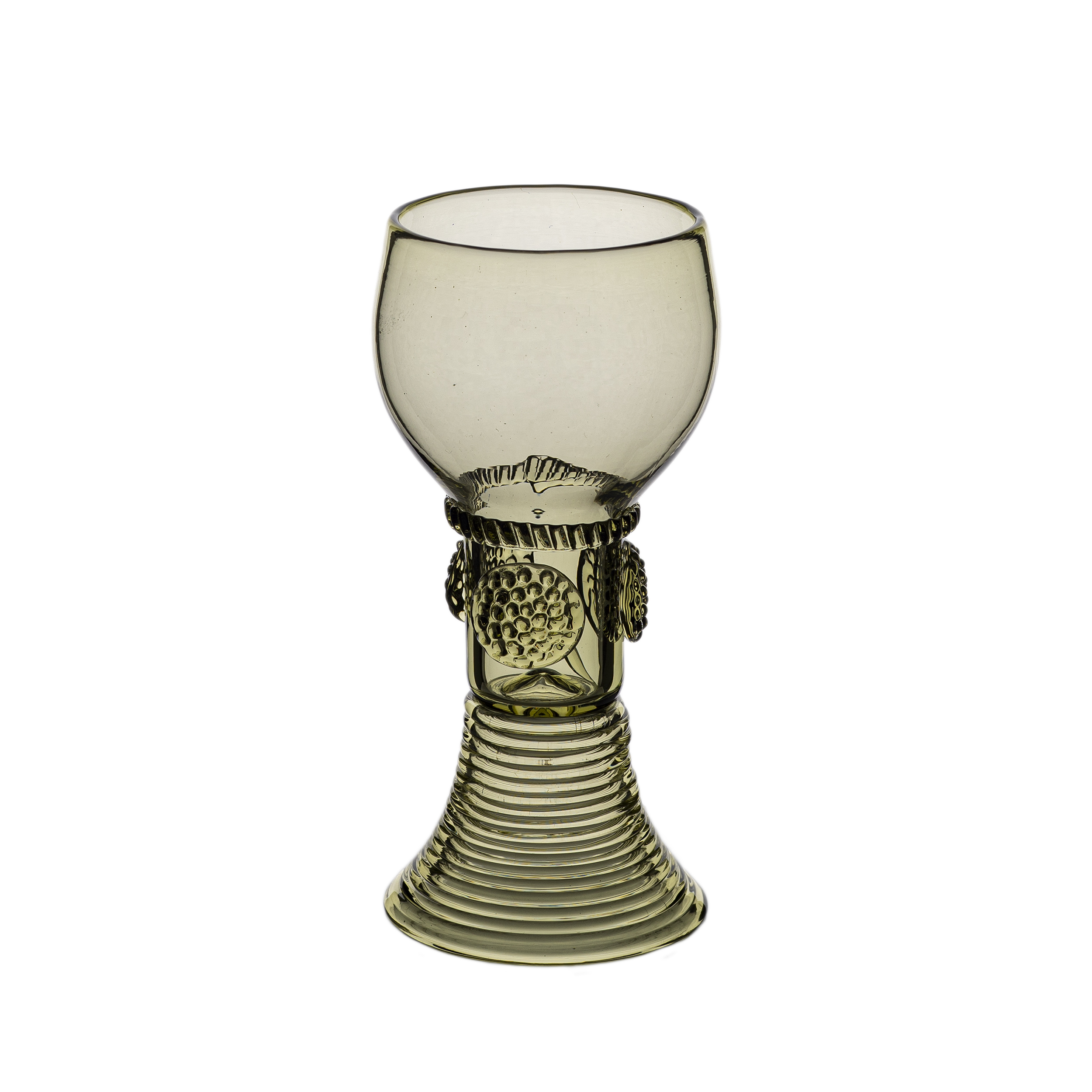 Bosglas ( Waldglas) kwam uit het bosgebied van Midden – Europa waar de benodigde grondstoffen onder handbereik waren.Potas uit asresten van beukenhout, adelaarsvarens en wat ijzeroxide gaven het bosglas de kenmerkende groene of bruine kleur.De noppen en bramen aan de buitenkant van het glas zorgde voor een goede grip.De mondgeblazen glazen kunnen qua vorm en kleur verschillen en hebben soms luchtbellen.Onze glazen replica’s uit de 17e eeuw komen uit Tsjechië.
