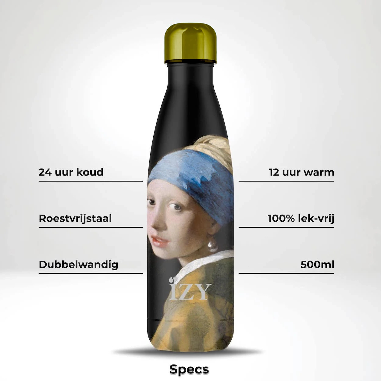 Ervaar tijdloze kunst en moderne functionaliteit met onze exclusieve thermosfles, bedrukt met Vermeer’s iconische ‘Meisje met de Parel’. Geniet van je favoriete drank in stijl, waar je ook gaat.