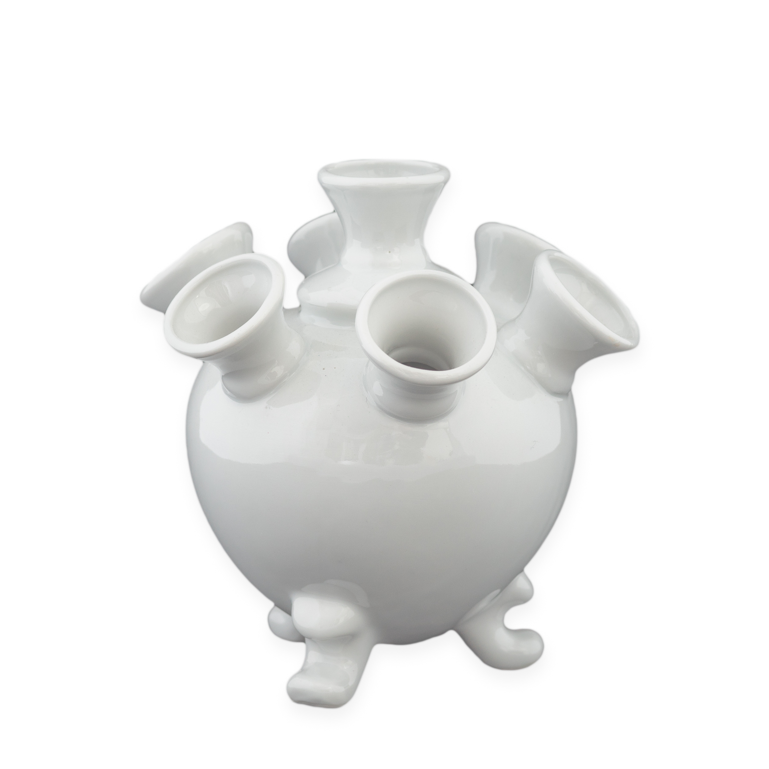 Tulpenvaasje van porselein. Er kunnen zeven tulpen in. Afmeting: ca. 15 x 15 x 15 cm